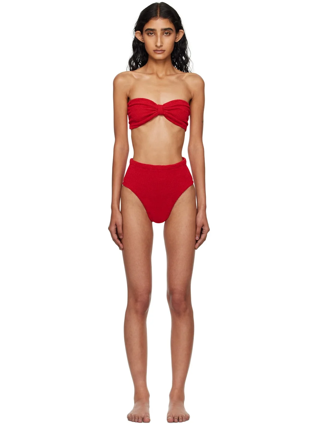 Shirred stretch nylon jersey bikini top and bottom. · Gathering at sweetheart neck · High-waisted bottom · Unlined This product uses Original Crinkle™ Technology. Fits US size 2-12. Supplier color: Red 97% polyamide, 3% elastane. Made in Morocco 252431F105042