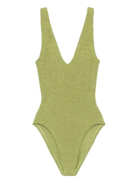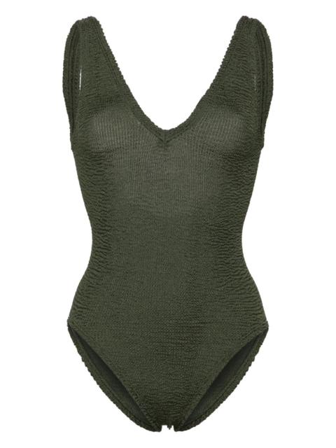 Sadie swimsuit Highlights - Forest green - Stretch-design - Shirred effect - Plunging v-neck - Sleeveless - Low back - Be mindful to try on swimwear over your own garments. Imported Composition Polyamide 97%, Spandex/Elastane 3% Washing instructions Machine Wash