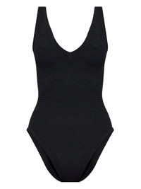 black stretch-design seersucker texture V-neck medium coverage sleeveless scoop back Be mindful to try on swimwear over your own garments. - Color: BLACK - Made in: Morocco - Designer Style ID: S-SADIE-CR CRINKLE BLACK Composition and care Polyamide: 97.0%, Elastane: 3.0%
