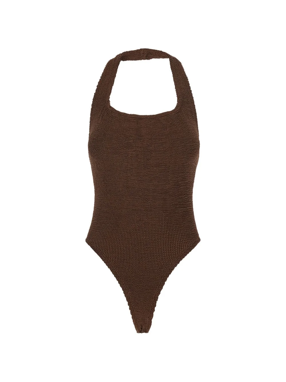 Sandy halterneck swimsuit Highlights - Brown - Crinkle texture - Halterneck - Open back - Be mindful to try on swimwear over your own garments. Imported Composition Polyamide 97%, Elastane 3% Washing instructions Machine Wash