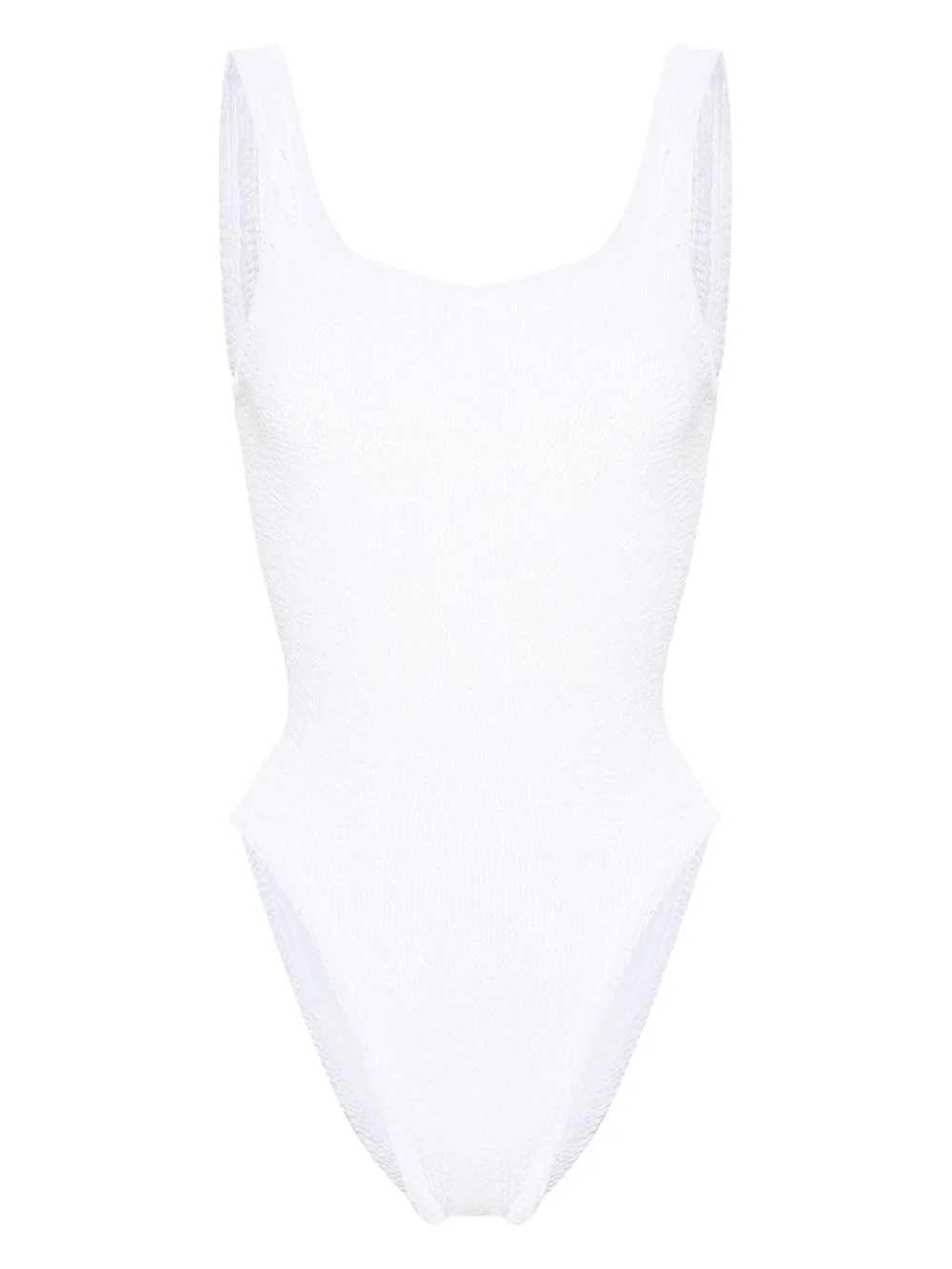 crinkled-effect open-back swimsuit Highlights - White - Stretch-design - Crinkled effect - Square neck - Wide shoulder straps - Open back - High cut - Be mindful to try on swimwear over your own garments. Imported Composition Polyamide 97%, Spandex/Elastane 3% SIZE & FIT Measurement LENGTH 20.47 in(52 cm) Washing instructions Machine Wash
