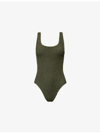 PRODUCT DETAILS - Hunza G swimsuit - 88% nylon, 12% elastane - Square neck, high-leg, seersucker texture - Hand wash - Model is 5ft 10in / 1.78m and wears one size - Lightweight, stretchy - One size fits size UK 6 to 16 - For hygiene reasons, we are unable to exchange or refund this product if the protective adhesive strip has been removed. Ref: R03873621-S