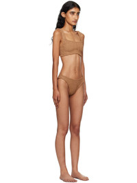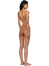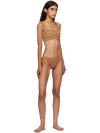 Shirred stretch nylon jersey bikini top and bottom. · Square neck · Integrated shoulder straps · Low back · Unlined This product uses Original Crinkle™ Technology. Fits US size 2-12. Supplier color: Metallic cocoa 97% polyamide, 3% elastane. Made in Morocco 252431F105005