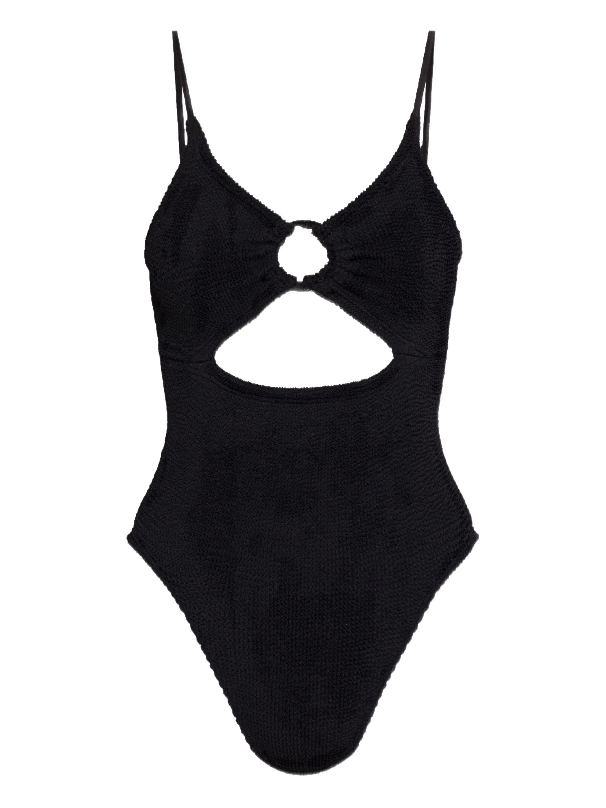 black pull-on style spaghetti straps cut-out detailing Be mindful to try on swimwear over your own garments. - Color: BLACK - Made in: Morocco - Designer Style ID: S-CRYSTAL-C CRINKLE BLACK Composition and care Polyamide: 100.0%