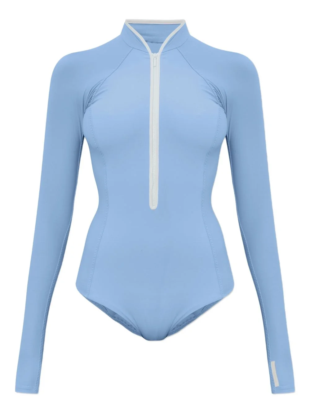 Tyra long-sleeve swimsuit Highlights - Blue - Long sleeves - Zip fastening - High neck - Piped trim - Be mindful to try on swimwear over your own garments. Imported Composition Recycled Polyamide 74%, Elastane 26% Washing instructions Read Manufacturer Guidelines