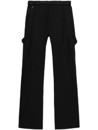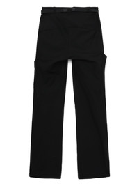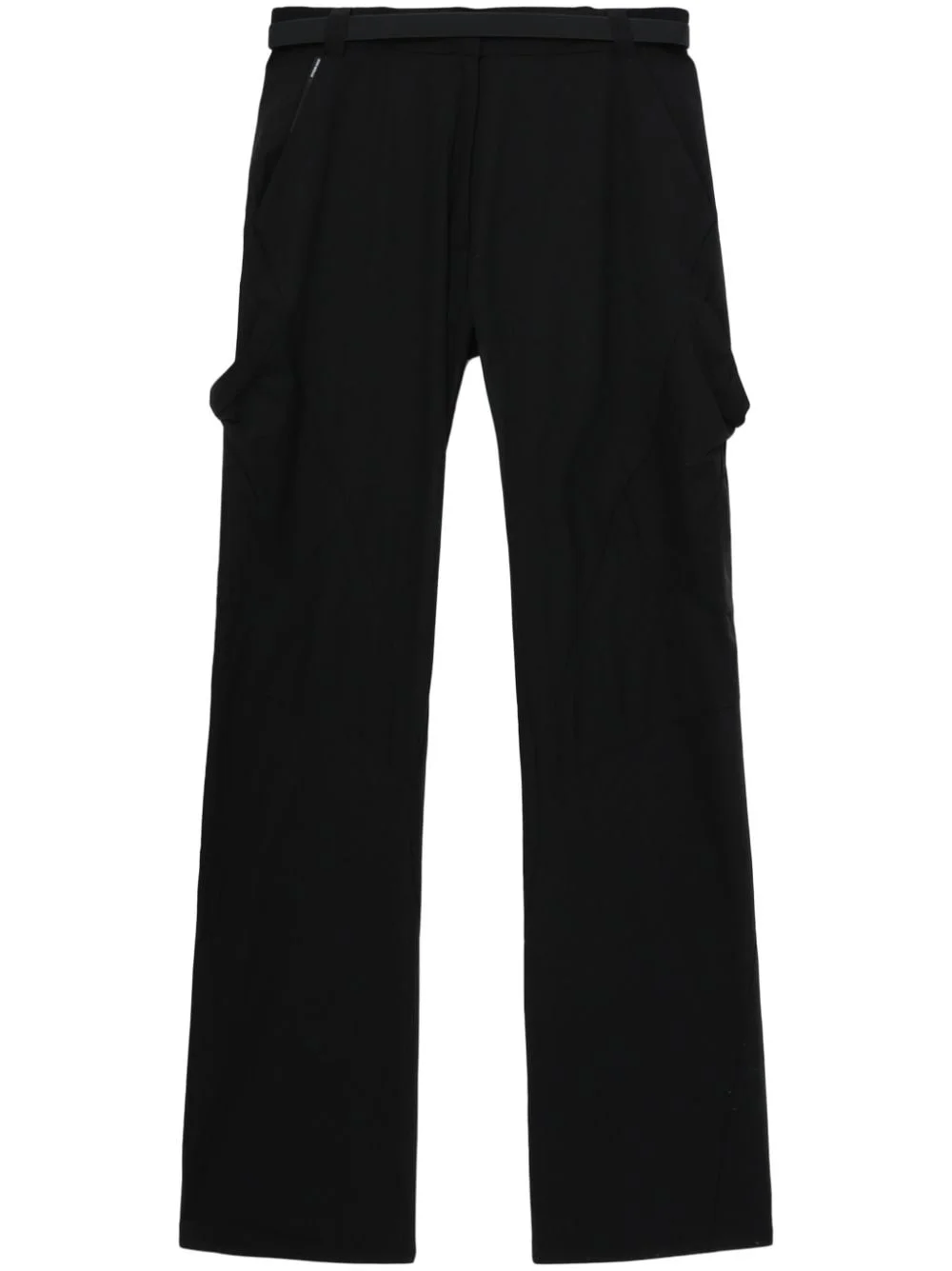 belted flared trousers Highlights - Black - Belt loops - Belted waist - Two side slash pockets - Two side patch pockets - Flared hem Imported Composition Polyester 100%