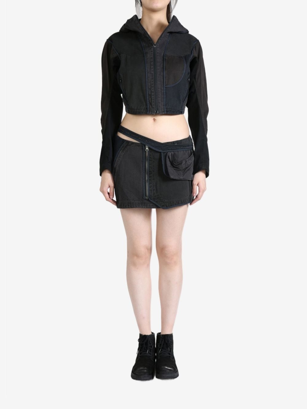 cropped jacket Highlights - Dark grey - Cotton - Panelled design - Front zip fastening - Classic hood - Funnel neck - Long sleeves - Decorative stitching - Two side zip-fastening pockets - Straight hem - Cropped Imported Composition Cotton 100%