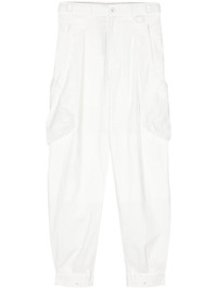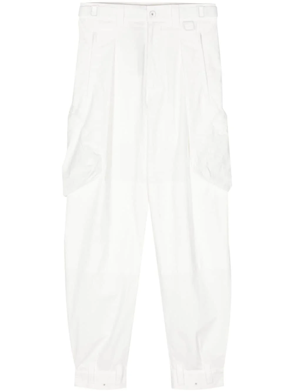 pleated cargo trousers Highlights - White - Cotton blend - Pleat detailing - Belt loops - Front button and zip fastening - Two side cargo pockets - Tapered leg Imported Composition Cotton 70%, Nylon 30% Washing instructions Dry Clean Only