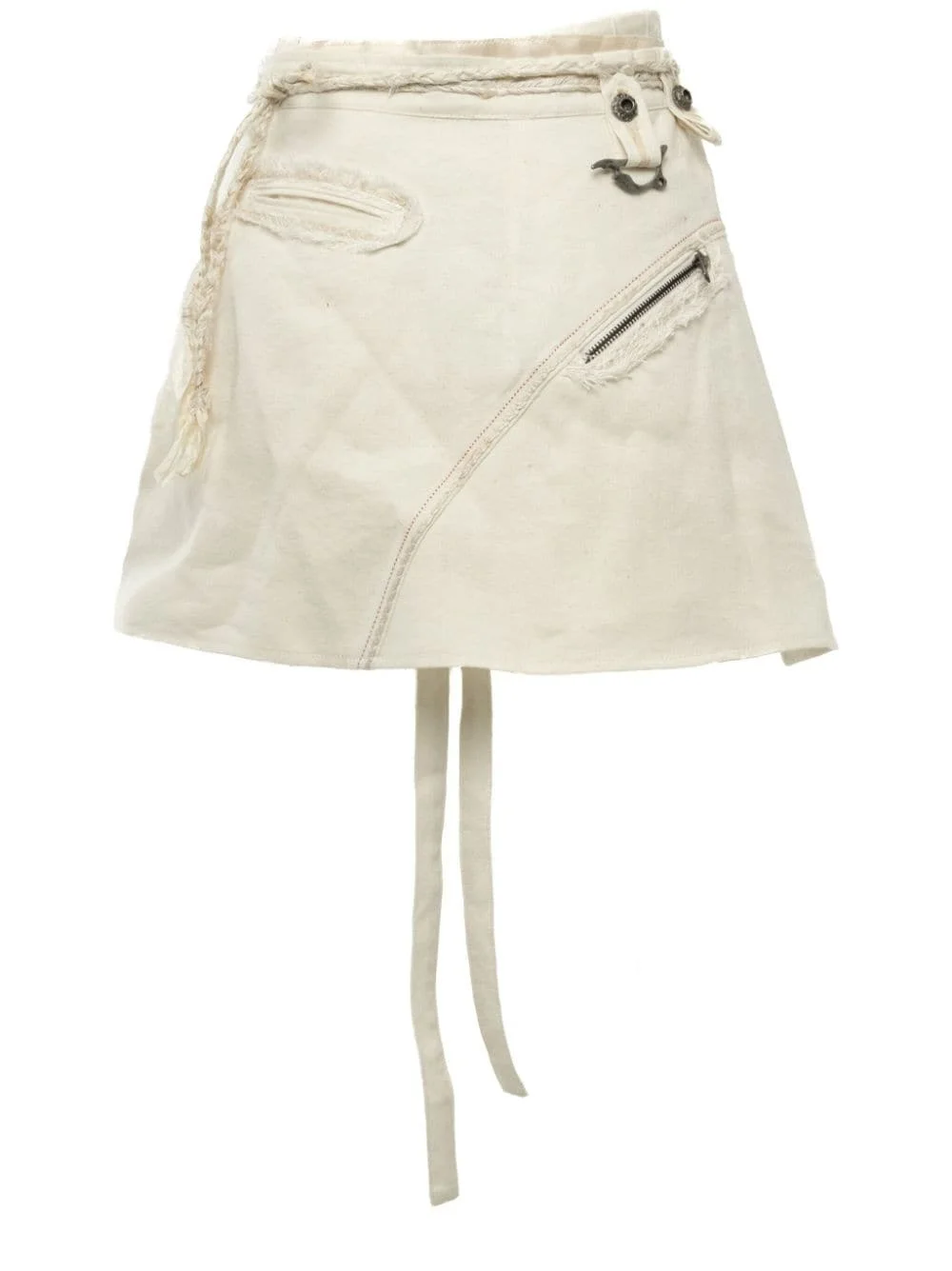 pleated wrap skirt Highlights - White - Linen-silk blend - Pleat detailing - Wrap design - Layered design - Braid detailing - Belted waist - Side zip-fastening pocket - Asymmetric hem Imported Composition Silk 50%, Linen/Flax 50% Washing instructions Read Manufacturer Guidelines