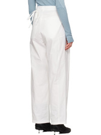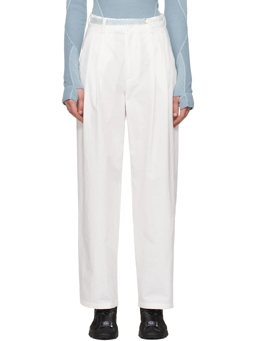 Wide-leg crinkled cotton poplin trousers. · Belt loops · Detachable beaded cinch belt · Four-pocket styling · Zip fly · Pleats at front · Aquamarine jade hardware Supplier color: White 100% cotton. Made in South Korea 251429F087006