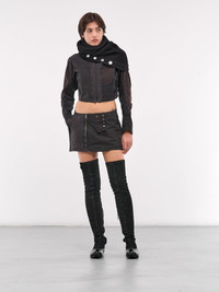 HYEIN SEO scarf in black, wool-nylon blend, paneled knit construction, rib-knit, turtleneck, button detailing, off-shoulder, fitted. 60% Fine Wool 30% Nylon 5% Acrylic 5% Rayon One Size
