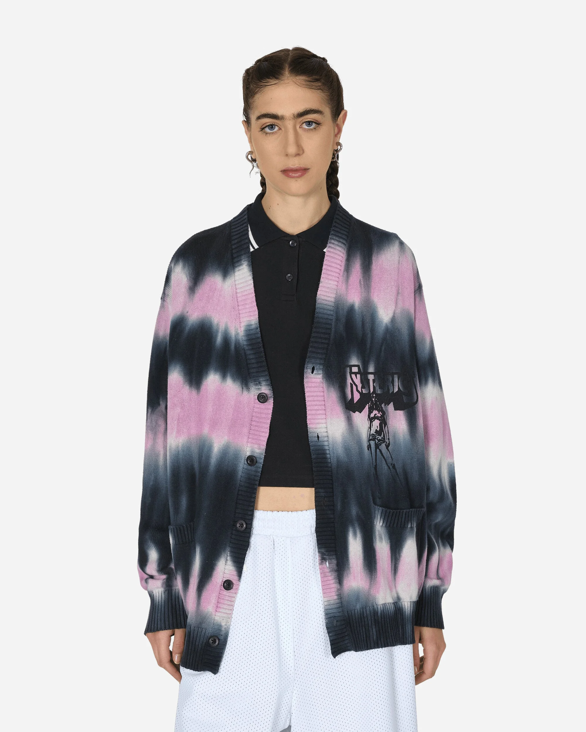 Hysteric Glamour Bad As Mama Tie-Dye Cardigan Black Hysteric Glamour is a Japanese brand known for its bold and provocative aesthetic, that combines elements of rock 'n' roll, pop culture, and contemporary art. The collections frequently feature vibrant prints, extravagant graphics, and unique details. - 100% Cotton - Oversized Fit - Tie-Dyed - V-Neck - Button Closure - Graphic Printed at Front and Back - Ribbed Cuffs and Hem - Made in Japan - Style Code: 01241ND019 B SIZE & FIT Model is 5ft 5in/1.70m with 30"/78cm chest and wears size ONE SIZE.