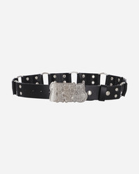 Hysteric Glamour Hypnotized Logo Ring Leather Belt Black This belt features an eye-catching semi-three-dimensional logo buckle paved with sparkling stones. The buckle can be removed and replaced. - 100% Leather - Removable Buckle - Studs and Stones Detailing - Made in Japan - ONE SIZE: 80-96cm - Style Code: 01251QE01 96