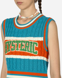 Hysteric Glamour Hysteric Gilet Blue Hysteric Glamour is a Japanese brand known for its bold and provocative aesthetic, that combines elements of rock 'n' roll, pop culture, and contemporary art. The collections frequently feature vibrant prints, extravagant graphics, and unique details. - 100% Cotton - Slim Fit - Cable Knit Pattern - Ribbed Collar, Armholes and Hem - Embroidered Logo Patch at Front - Style Code: 01241NV019 B SIZE & FIT Model is 5ft 5in/1.70m with 30"/78cm chest and wears size ONE SIZE.