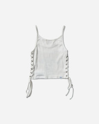 Hysteric Glamour Bad as Mama Short Camisole White Hysteric Glamour is a Japanese brand known for its bold and provocative aesthetic, that combines elements of rock 'n' roll, pop culture, and contemporary art. The collections frequently feature vibrant prints, extravagant graphics, and unique details. The brand has gained significant popularity in the Japanese fashion scene and has also garnered an international following. - 100% Cotton - Cropped Fit - Graphic Printed at Front - Lace-Up Closure at Sides - Made in Japan - Style Code: 01251CR05 0 SIZE & FIT Size Body Chest One Size 42.5cm 32cm