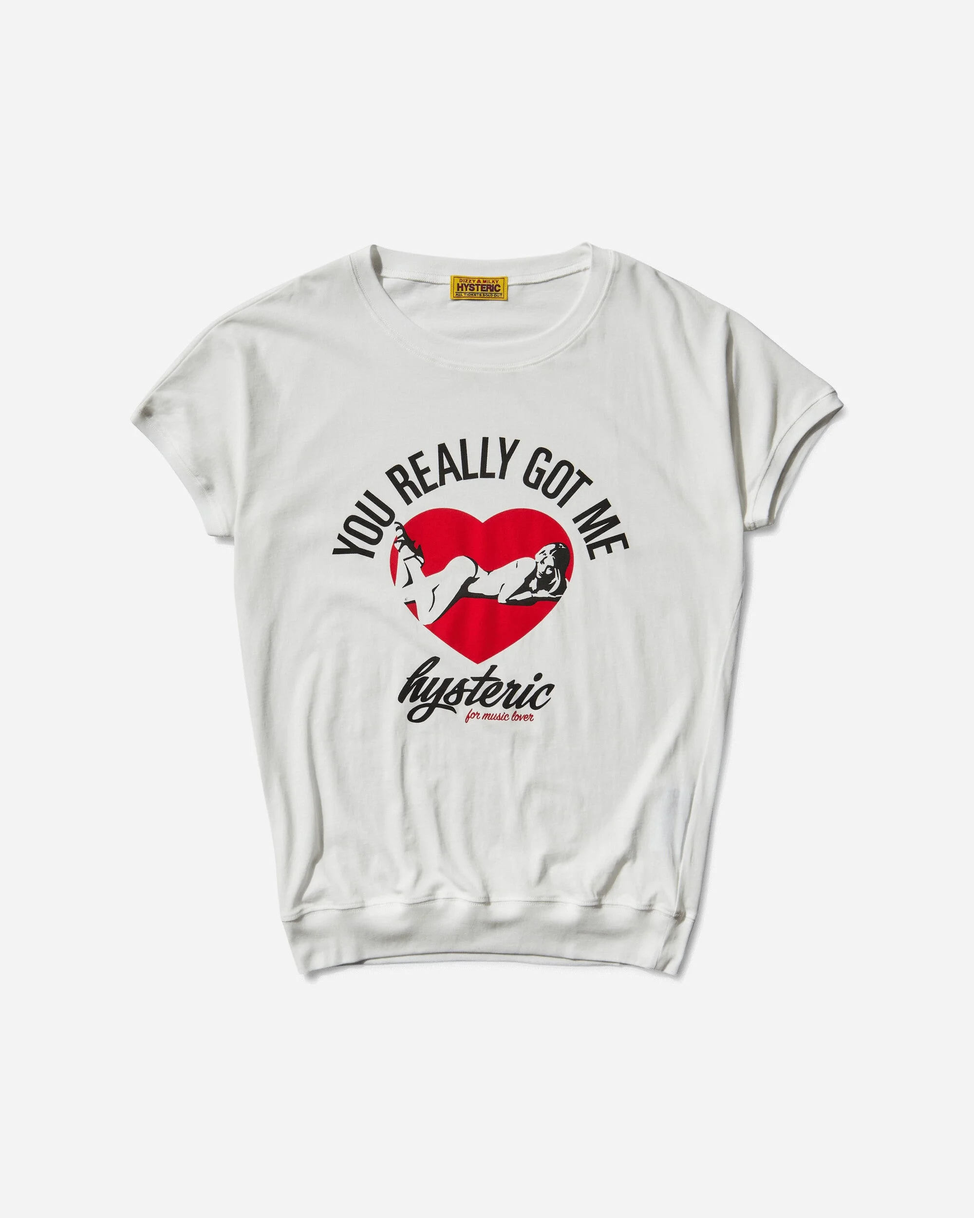 Hysteric Glamour Music Lover T-Shirt White Hysteric Glamour is a Japanese brand known for its bold and provocative aesthetic, that combines elements of rock 'n' roll, pop culture, and contemporary art. The collections frequently feature vibrant prints, extravagant graphics, and unique details. The brand has gained significant popularity in the Japanese fashion scene and has also garnered an international following. Slim fit t-shirt made from 100% cotton with graphic printed on the front. - 100% Cotton - Slim Fit - Ribbed Collar and Hem - Graphic Printed at Front - Made in Japan - Style Code: 01251CT18 0