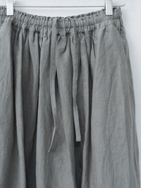 Ichi's signature easy skirt made from midweight linen with a dry hand. It features an elastic waistband with inner drawstrings, side pockets, and gentle gathers that create a subtle A-line shape. Relaxed fit. - Made in Japan - 100% Linen - Available in Khaki - The model is 5'8"/173 cm and wears the One Size