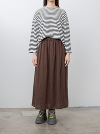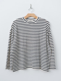 A relaxed fit, striped long sleeve tee from Ichi made in a soft, lightweigh and slightly slubby cotton. It features a crewneck, dropped shoulders and a wide body. - Made in Japan - 100% Cotton - Available in White/Navy, Charcoal/White - The model is 5'8"/173cm and wears the One Size