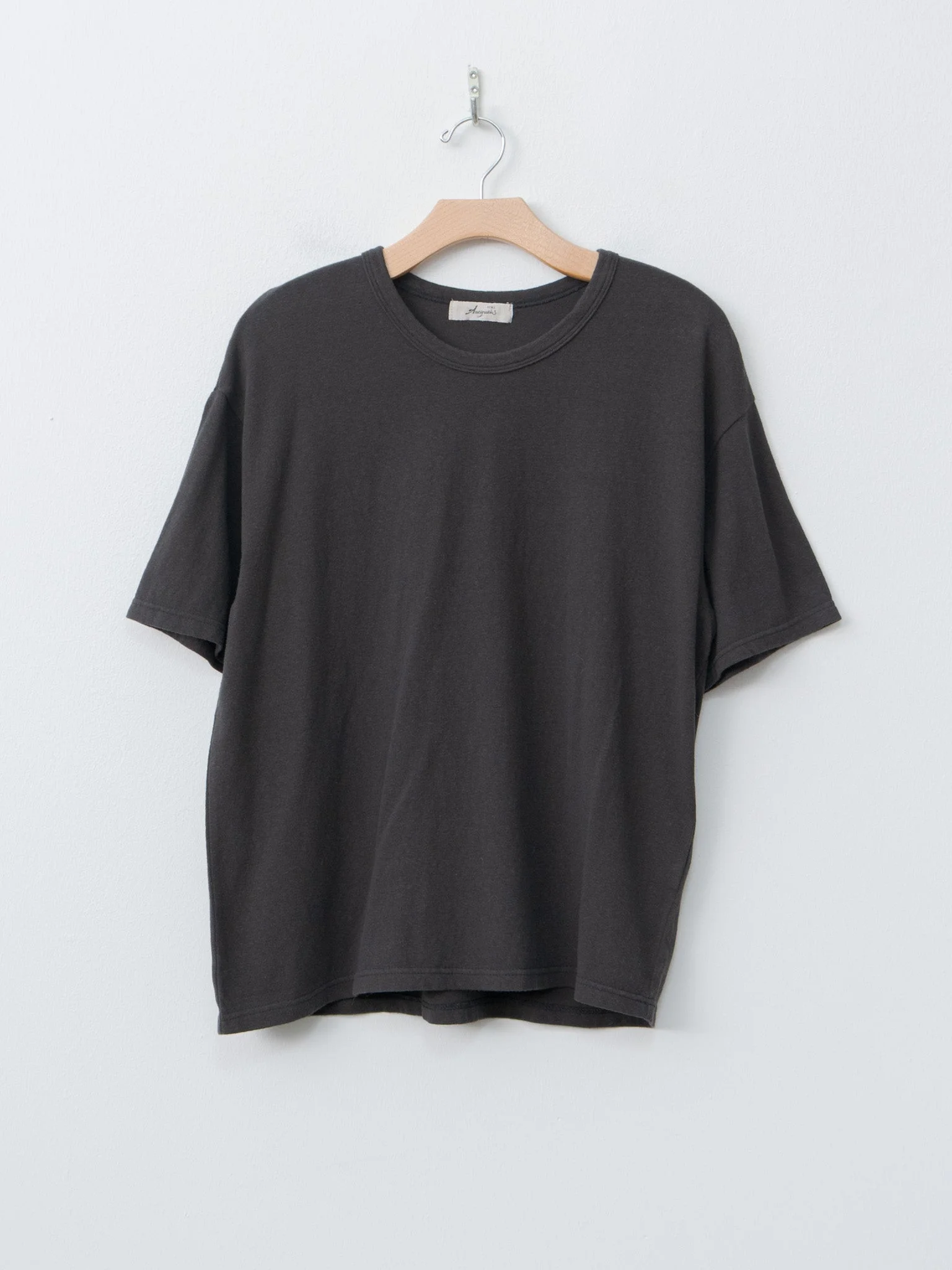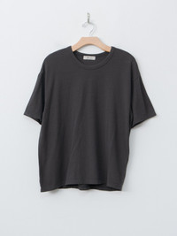A soft and slubby tee made from a midweight cotton jersey with a hint of stretch. It features a crewneck, dropped shoulders, and half sleeves. Relaxed fit. - Made in Japan - 98% Cotton, 2% Polyurethane - Available in Black - The model is 5'8"/173 cm and wears the One Size