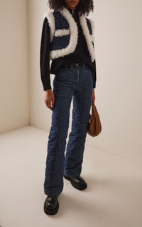 Ienki Ienki elevates cold weather dressing to hyper-cool statement levels. Launched in 2016 by designer Dima Ievenko, the Ukrainian brand infuses a bright playfulness with modern luxury into winter sportswear. A fresh take on classic chalet pant. Made from a down-filled quilted denim, they have straight legs that fit over any ski boot and a removable webbed belt with a magnetic buckle. PRODUCT DETAILS - Suitable for sporting conditions - Zip fastening - Composition: 100% cotton; Lining: 100% nylon; Padding: 90% goose down, 10% feathers - Dry clean - Imported
