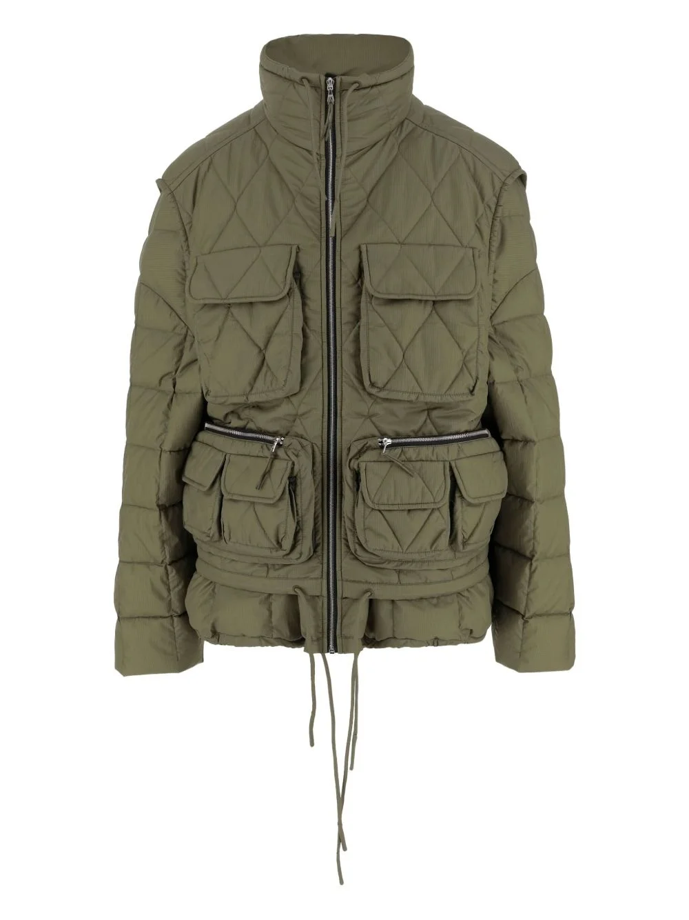 Ember quilted pocket jacket Highlights - Khaki - Diamond quilting - Multiple pockets - Zip fastening - Drawstring hem - High neck Imported Composition Nylon 93%, Polyurethane 7% Washing instructions Read Manufacturer Guidelines