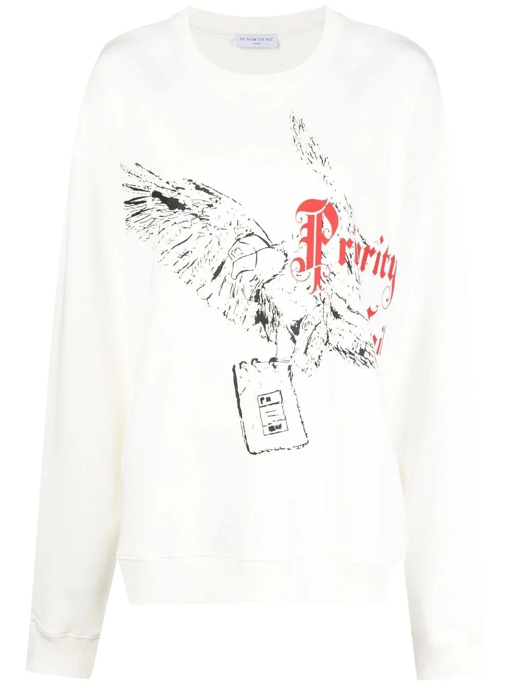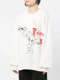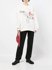 graphic-print sweatshirt off-white cotton graphic print to the front logo print to the rear round neck long sleeves ribbed cuffs ribbed hem Made in Italy Composition Cotton 100% SIZE & FIT Model measurements Height 5 ft 10 in(1.79 m) Bust/Chest 31.49 in(80 cm) Hips 35.03 in(89 cm) Waist 24.01 in(61 cm) FittingInformation This piece fits small – you might want to get two sizes up Cut for an oversized fit Made with a mid-weight fabric Washing instructions Hand Wash