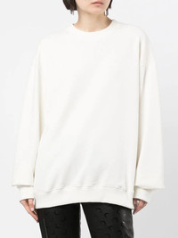 logo-print crew neck sweatshirt off-white/jet black cotton logo print to the rear crew neck long sleeves ribbed hem Made in Italy Composition Cotton 100% SIZE & FIT Model measurements Height 5 ft 10 in(1.79 m) Bust/Chest 31.49 in(80 cm) Hips 35.03 in(89 cm) Waist 24.01 in(61 cm) FittingInformation This piece fits small – you might want to get two sizes up Cut for an oversized fit Made with a mid-weight fabric Washing instructions Machine Wash