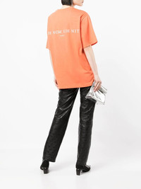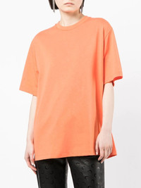 logo-print short-sleeve T-shirt light orange cotton logo print to the rear round neck short sleeves straight hem Made in Italy Composition Cotton 100% SIZE & FIT Model measurements Height 5 ft 10 in(1.79 m) Bust/Chest 31.49 in(80 cm) Hips 35.03 in(89 cm) Waist 24.01 in(61 cm) FittingInformation This piece fits small – you might want to get two sizes up Cut for an oversized fit Made with a mid-weight fabric Washing instructions Machine Wash