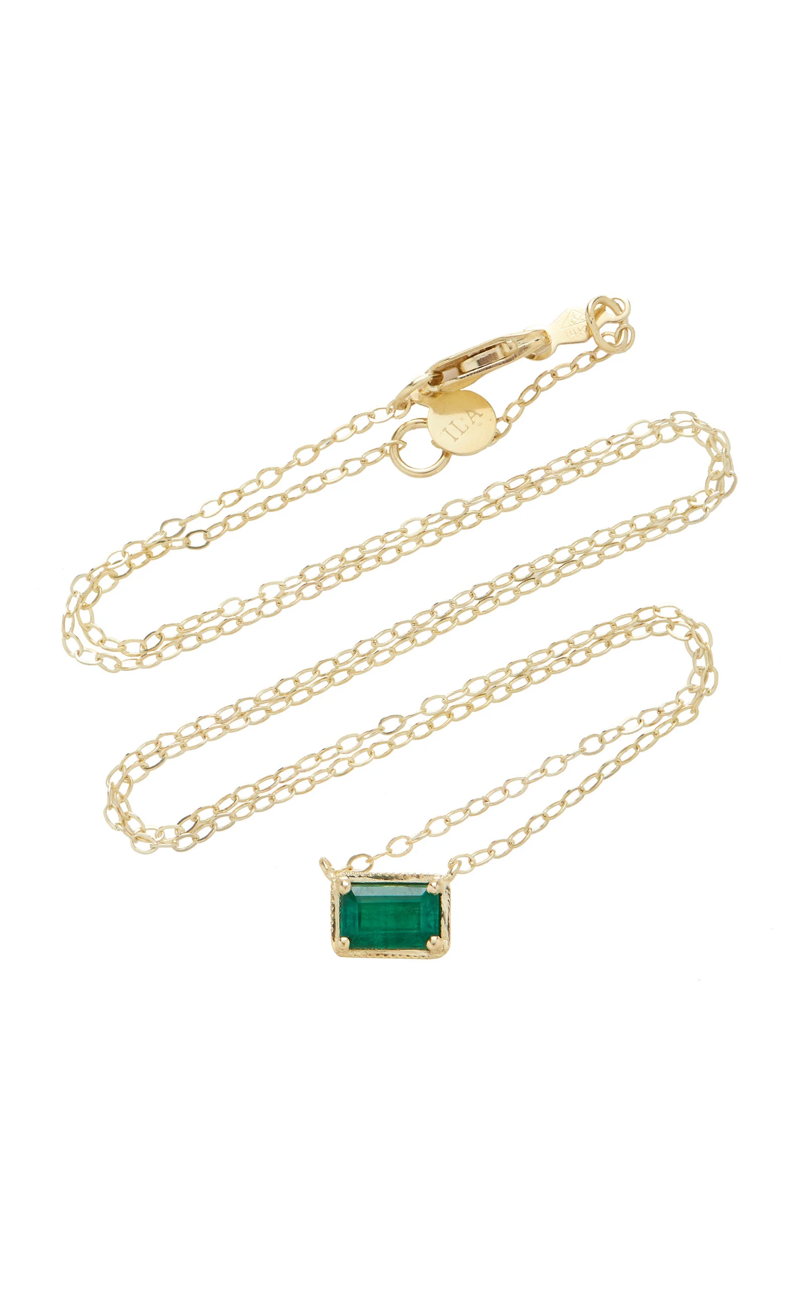 The designer's behind ILA trace their roots in jewelry back to their ancestral homeland in the north western deserts of India — a place enchanted by history, mysticism and beauty and is where the edifices of their family lineage still stand today. Carved with the most skilled hand, each piece tells the stories of mythology of the land. PRODUCT DETAILS - Not eligible for expedited shipping - Lobster clasp fastening - Composition: 14K gold; emerald, 0.55cts - Made in the USA - Please note the possibility of natural inclusions in gemstones
