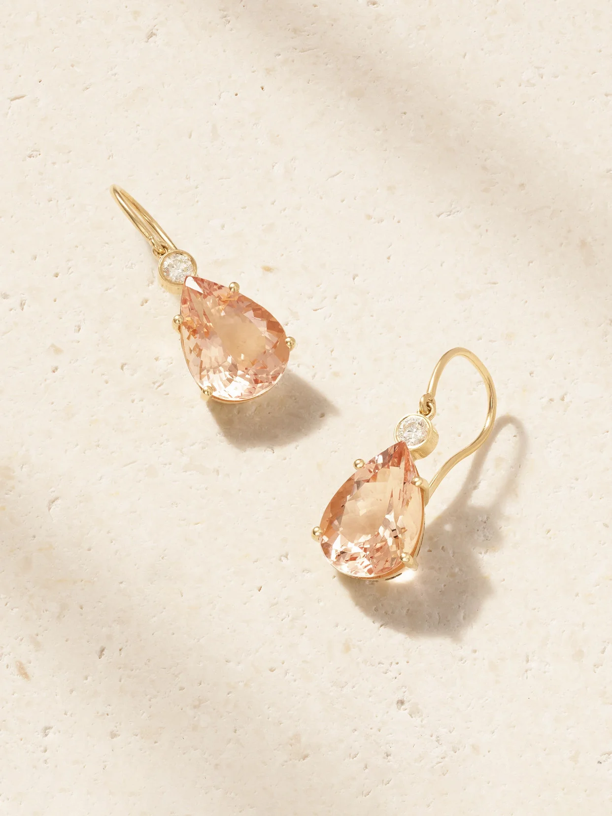 Ileana Makri creates fine jewelry that feels both mystical and modern. These earrings are handmade from 14-karat gold and set with teardrop-shaped morganites and sparkling diamonds. Wear them to elevate your everyday outfits.