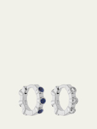 18K White Gold Midi Hoop Earrings with White Diamonds and Blue Sapphires