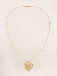 Ileana Makri's necklace has a heart-shaped pendant that's set with diamonds and tsavorites - it depicts the evil eye, a symbol of protection for the wearer. It's crafted from 18-karat gold and strung on a slender chain. Details & Care - Diamonds, total weight: 0.66-carats, blackened diamonds, total weight: 0.15-carats; tsavorites, total weight: 0.02-carats - Clasp fastening - The black color of this these diamonds is the result of an artificial treatment process - This piece has been certified in accordance with the Hallmarking Act 1973