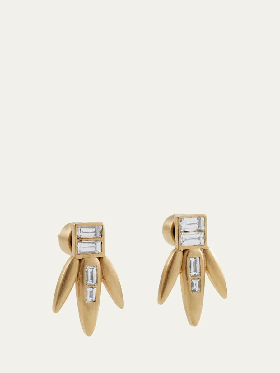 Baguette Diamond Grass Straw Earrings in 18K Yellow Gold