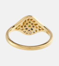 The Cats Eye ring is a label signature, handmade in Ileana Makri's native Greece from 18-karat yellow gold. Its evil-eye motif is created with a beguiling combination of white diamonds, blue sapphires, and a green tsavorite garnet in the center. Product Details - Material: 18kt yellow gold - Stone I: diamond, pavé setting - Stone II: sapphire, pavé setting - Stone III: tsavorite, pavé setting - Made in Greece - Designer color name: Yellow Gold - Item number: P00579151 Size & Fit - Max. width 15mm-0.6"