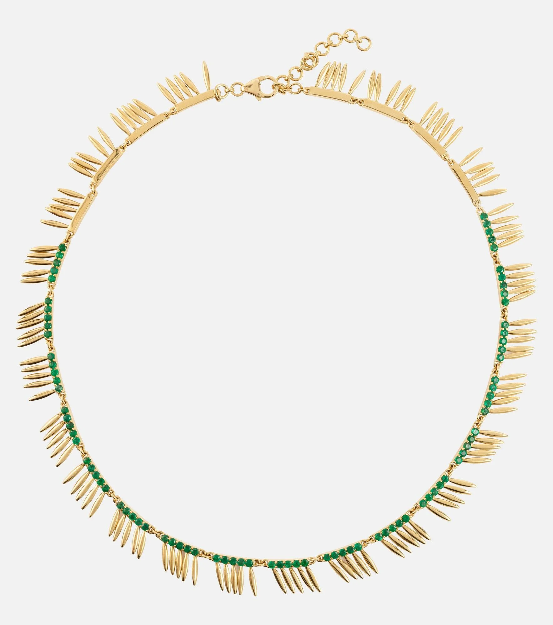 Inspired by the beauty found in nature, Ileana Makri’s Grass Sunny necklace features golden drops that sway gracefully as you move. Made from 18kt yellow gold, it’s decorated with sparkling 2.73ctw round-cut, prong-set emeralds, and finishes on a lobster clasp fastening. Product Details - Material: 18kt yellow gold - Stone I: emerald, round-cut, prong setting - Closure: lobster-clasp fastening - Made in Greece - Designer color name: 18k Yellow Gold - Item number: P00709816 Size & Fit - Adjustable length - Max. width 10mm-0.4" - Min. length 37,5cm-15" - Max. length 42cm-16.5"