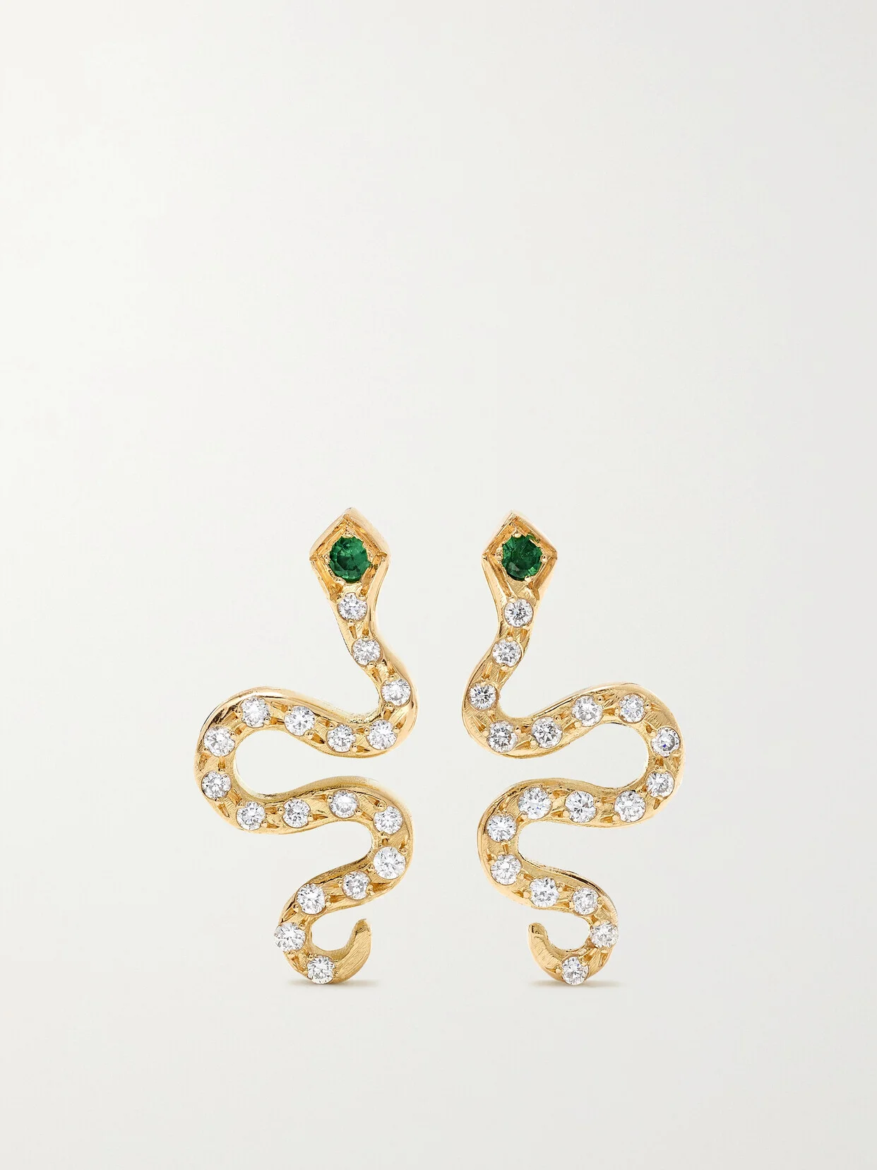 Little Snake 18-karat Gold, Diamond And Tsavorite Earrings