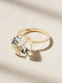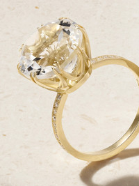Ileana Makri travels the globe to source exquisite gems which she brings back to Greece and then works with skilled craftspeople to realize her designs. Named after its classic setting, this 'Solitaire Crown' ring is handmade from 18-karat gold and centered with a 11.13-carat white topaz that sparkles beautifully from all angles. The slim band is set with 0.08-carats of equally exquisite diamonds.