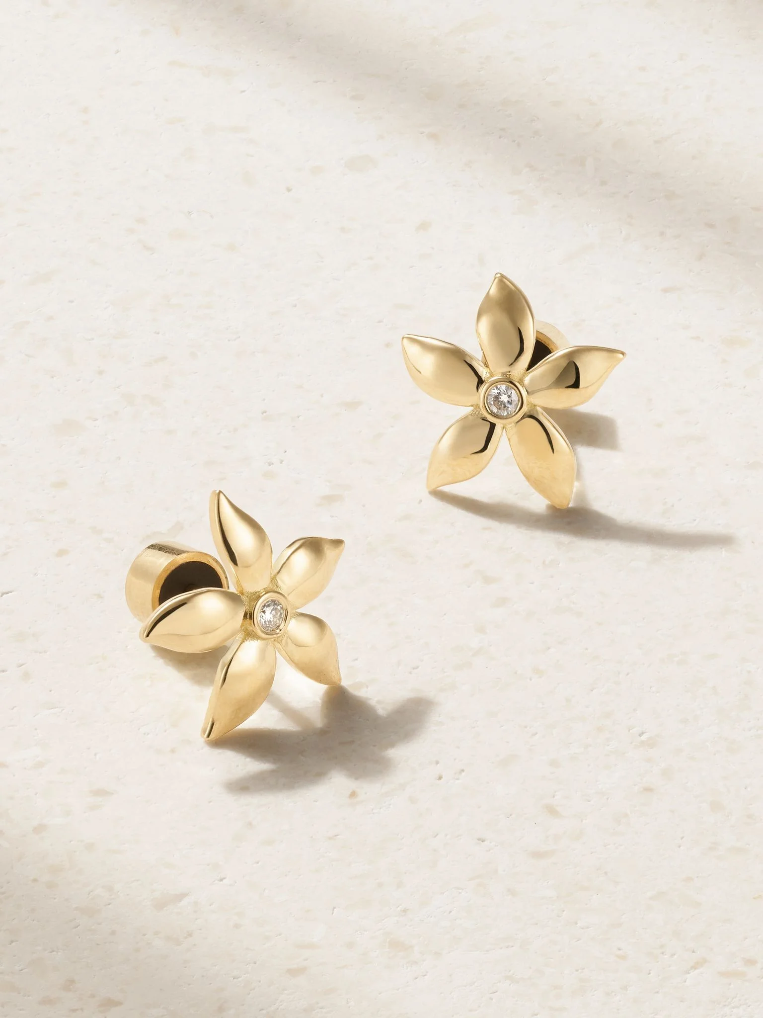 Ileana Makri's earrings are handmade from 18-karat gold to look like blossoming flowers. The 0.04-carats of shimmering diamonds adds just a touch of sparkle. Details & Care - Round-cut G VS-SI diamonds, total weight: 0.04-carats - Bell-back fastening for pierced ears - This piece has been certified in accordance with the Hallmarking Act 1973