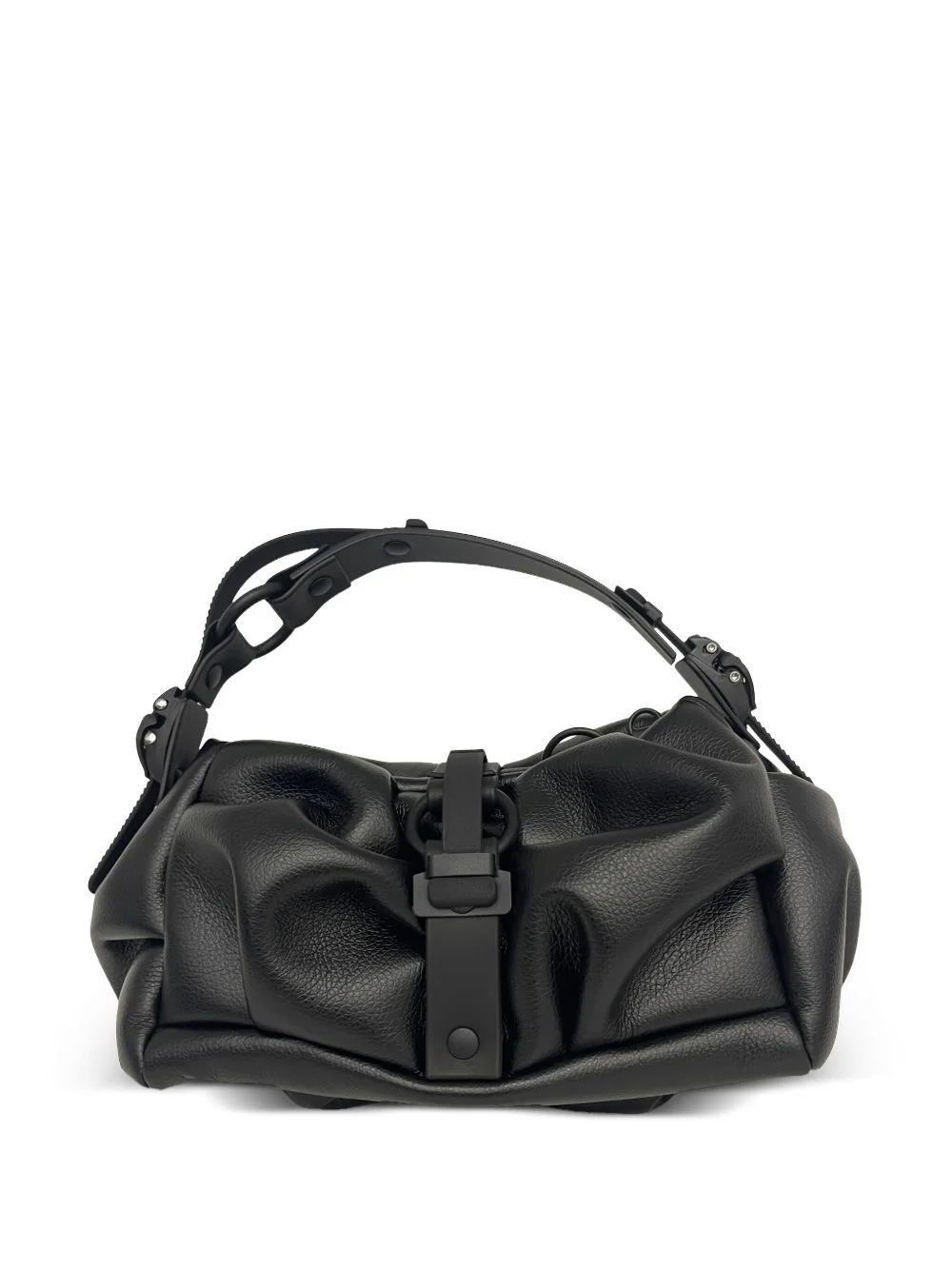 small half-moon shoulder bag Highlights - Black - Ruched detail - Top handle - Buckle fastening Made in Italy Composition Polyurethane 100% SIZE & FIT Measurement HEIGHT 11.02 in(28 cm) WIDTH 13.77 in(35 cm) DEPTH 3.54 in(9 cm)
