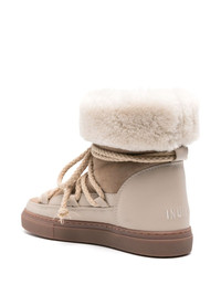 Classic leather lace-up boots INUIKII's Classic sneaker boots are a harmonious marriage of style and comfort. They’re crafted with a panelled suede, leather and shearling upper and enhanced with a chunky lace-up fastening. An embroidered logo at the back adds a stamp of identity, while a rubber sole enhances durability. Highlights - Sesame beige/sand beige/chocolate brown - Calf leather - Water-resistant - Snowproof - Panelled design - Suede panelling - Shearling trim - Embroidered logo to the rear - Slip-on style - Round toe - Lace-up fastening - Shearling lining - Branded insole - Flat rubber sole Imported Composition Leather 100% SIZE & FIT Measurement HEEL 0.98 in(2.5 cm) CIRCUMFERENCE 9.84 in(25 cm) Sole height 0.78 in(2 cm) HEIGHT 6.1 in(15.5 cm)