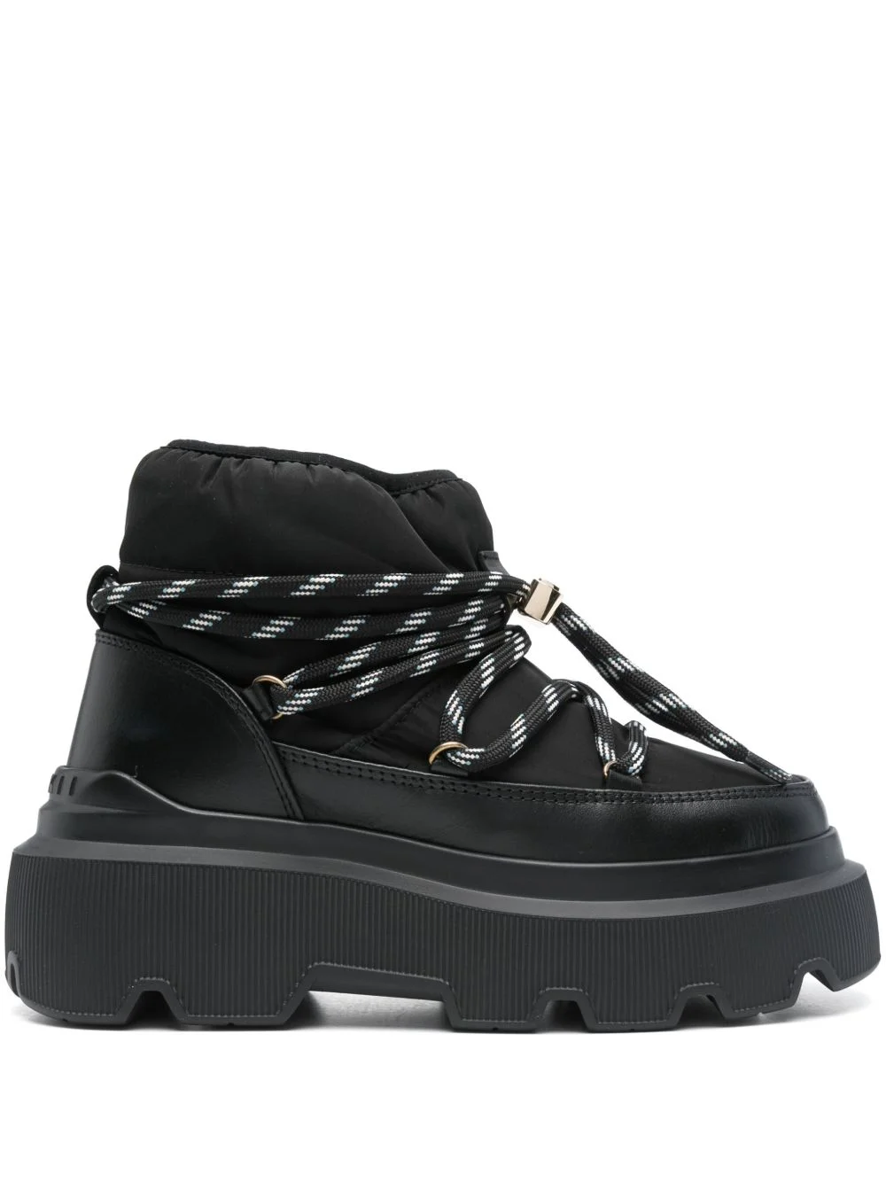 Endurance Cozy boots Highlights - Black - Front lace-up fastening - Chunky rubber sole Imported Composition Outer: Fabric 100%, Calf Leather 100% Lining: Fabric 100% Sole: Rubber 100% SIZE & FIT Measurement HEEL 2.36 in(6 cm)