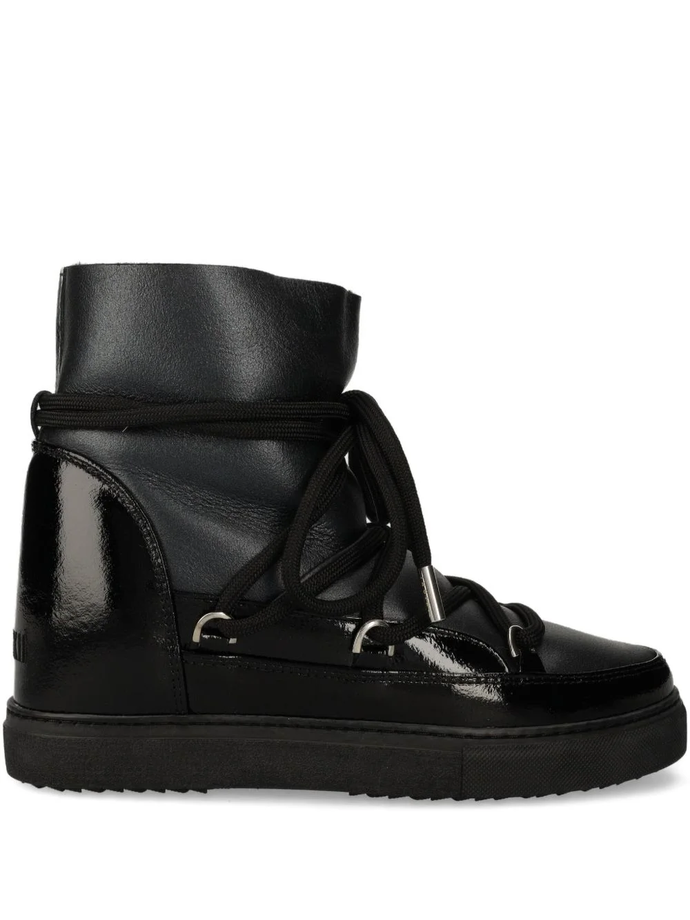 lace-up panelled ankle boots Highlights - Black - Panelled design - Lace-up fastening - Round toe - Flat sole - Silver-tone hardware Imported Composition Outer: Leather 100%, Patent Leather 100% Lining: Wool 100% Sole: Synthetic Rubber 100%
