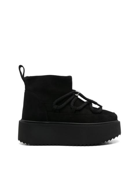 suede boots Highlights - Black - Calf suede - Panelled design - Front toggle fastening - Embroidered logo to the rear - Pull-tab at the heel - Round toe - Faux-shearling lining - Branded insole - Rubber platform sole - Ankle-length Imported Composition Suede 100% SIZE & FIT Measurement CIRCUMFERENCE 10.62 in(27 cm) HEEL 2.04 in(5.2 cm) HEIGHT 4.52 in(11.5 cm) PLATFORM 1.88 in(4.8 cm)
