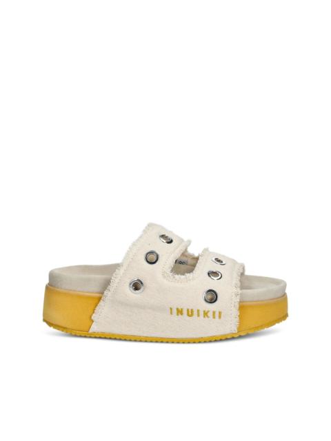 suede slides Highlights - Beige - Slip-on style - Branded insole - Frayed edge - Eyelet detailing - Platform sole - Open round toe Imported Composition Sole: Rubber 100% Lining: Suede 100%, Fabric 100% Outer: Fabric 100%