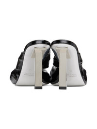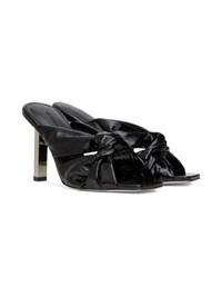 Patent leather heeled sandals in black. · Open square toe · Knotted accent at vamp · Logo embossed at padded leather footbed · Covered stiletto heel with rubber injection · Leather outsole · Heel: H3 in Supplier color: Black Leather. Made in Italy 231451F125000