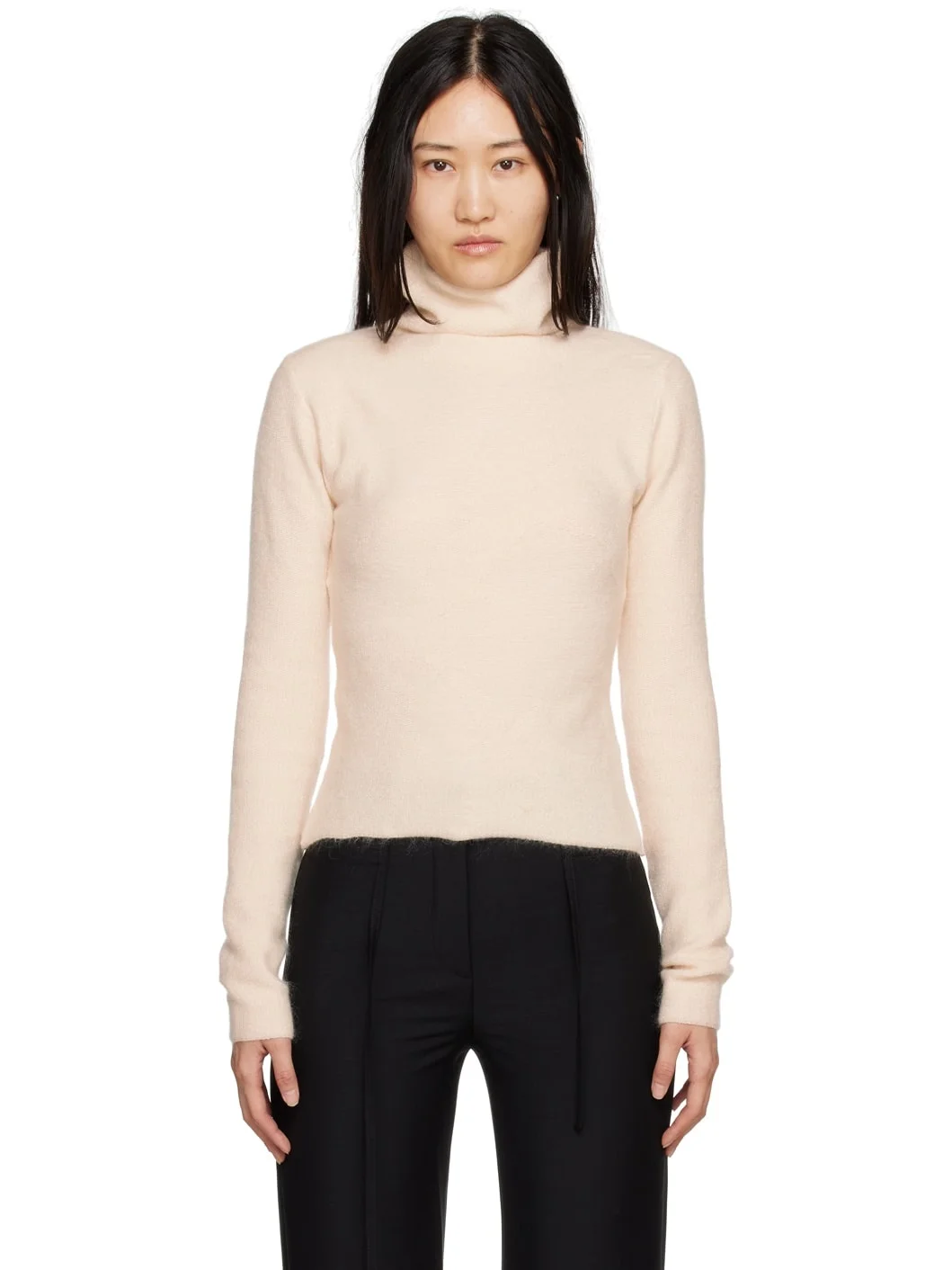 Stretch purl knit nylon and mohair-blend sweater. Turtleneck. Supplier color: Blush 46% polyamide, 25% superkid mohair, 25% extra fine merino wool, 4% elastane. Made in United Kingdom 222451F099000