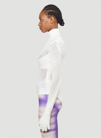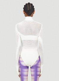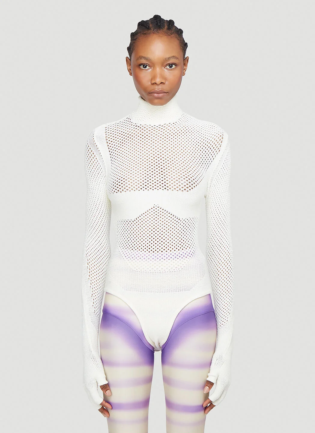 Eco-conscious Indonesian womenswear brand Isa Boulder was created to embrace individuality and personal style. The Arcade Bodysuit is crafted from a technical-blend fabrication in an open-knit weave, featuring a turtleneck, close-knit contrast panels and fingerless glove sleeves. - Technical-blend fabrication in an open-knit weave - Turtleneck - Close-knit contrast panels - Fingerless glove sleeves - Fastening at gusset - Directional style - 90% Acrylic 10% Elastane. Dry clean. - Color: White - Code: 20BD4