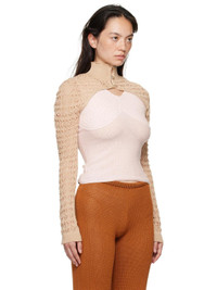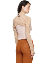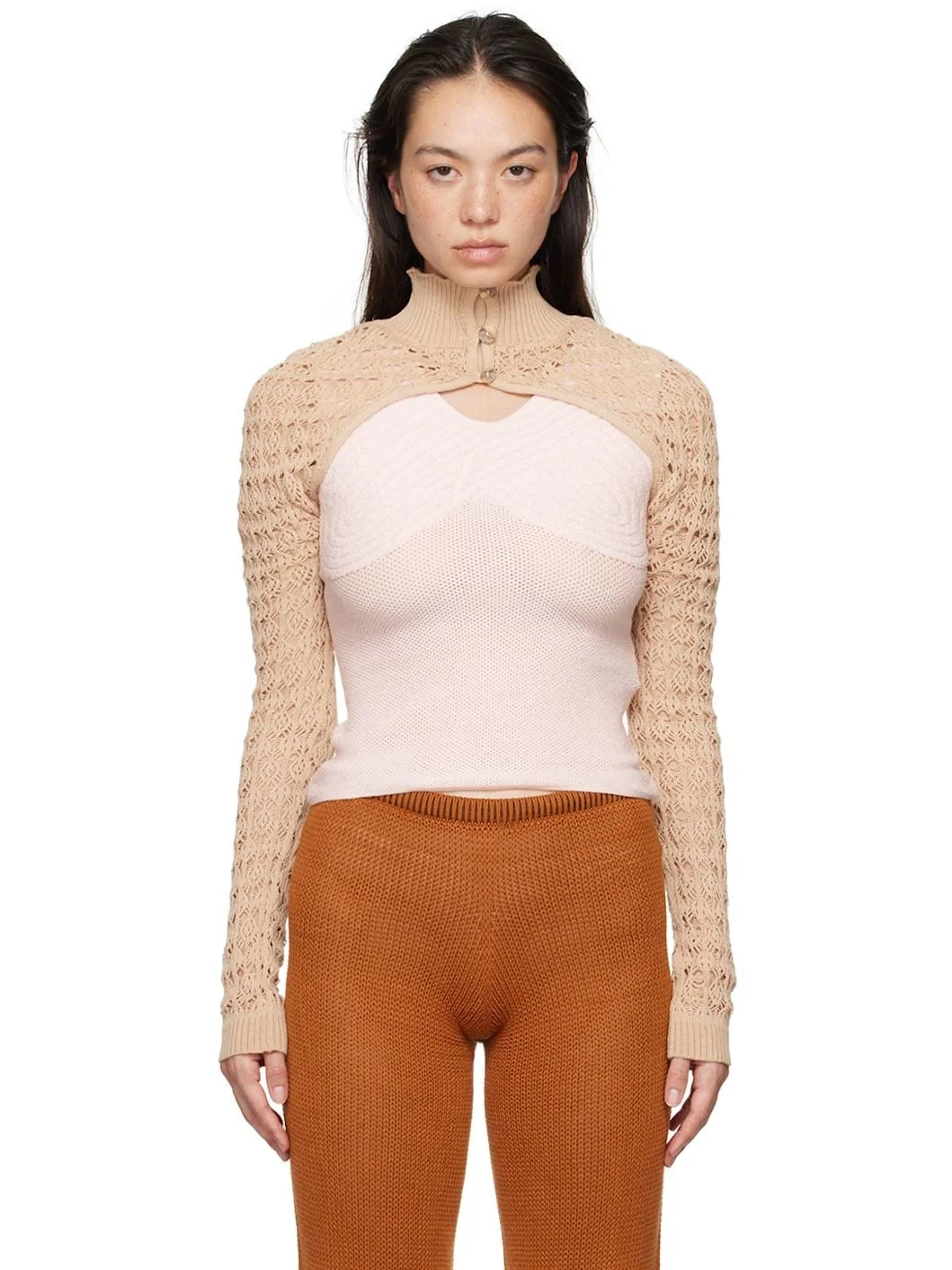 Handcrafted lace-knit cotton bolero-style sleeves. Rib knit mock neck and cuffs. Supplier color: Gold 100% cotton. Made in Indonesia 242541F012004