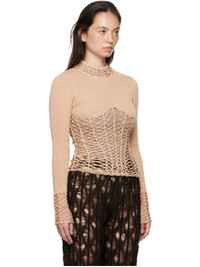 Rib knit and woven stretch cotton T-shirt. · Knotted detailing throughout · Crewneck Supplier color: Gold 90% cotton, 10% elastane. Made in Indonesia 242541F096003