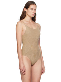Handcrafted knit and rib knit stretch cotton bodysuit. · Square neck · Pointelle knit detailing at front · Elasticized spaghetti straps · Logo flag at back · Low back Supplier color: Sand 90% cotton, 10% elastane. Made in Indonesia 242541F358004
